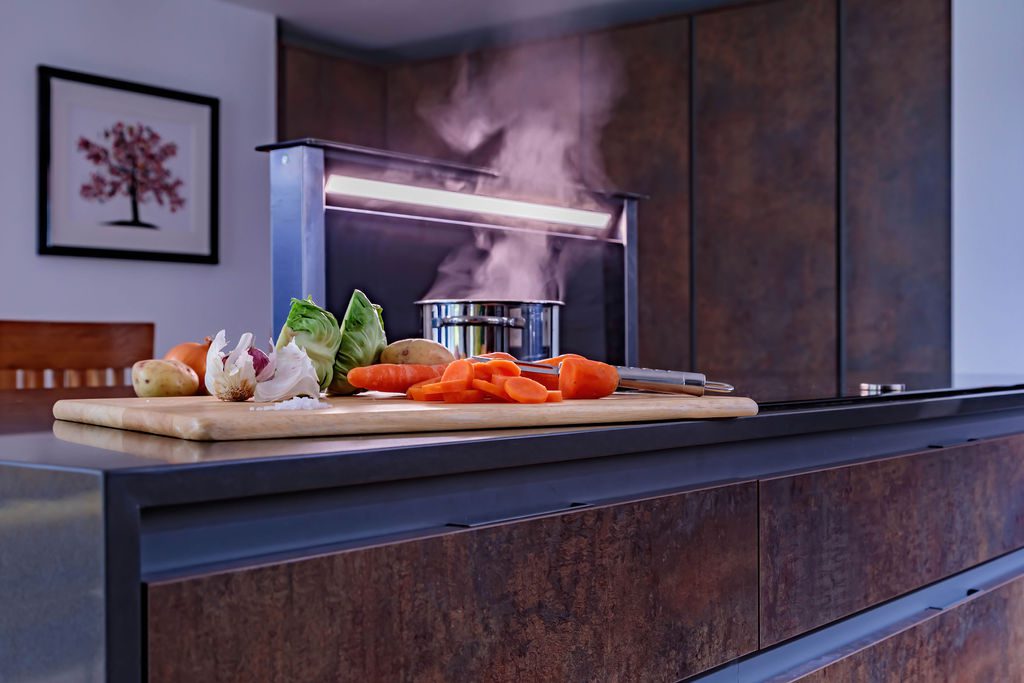As nights draw in and skies darken, we shift the mood to match. Choosing a more dramatic contrast between cabinet colours and worktops creates a much stronger statement. We’ve recently noticed an increased interest in darker worktop shades. Painting cabinets in deeper, more intense colours such as Warm Pewter, Vulcan, Scree or Dark Lead will combine well with worktops such as Caesarstone Raindream and Cloudburst Concrete, Cimstone Nebula, Classic Quartz Cloudy or RT Stone Thunder White.